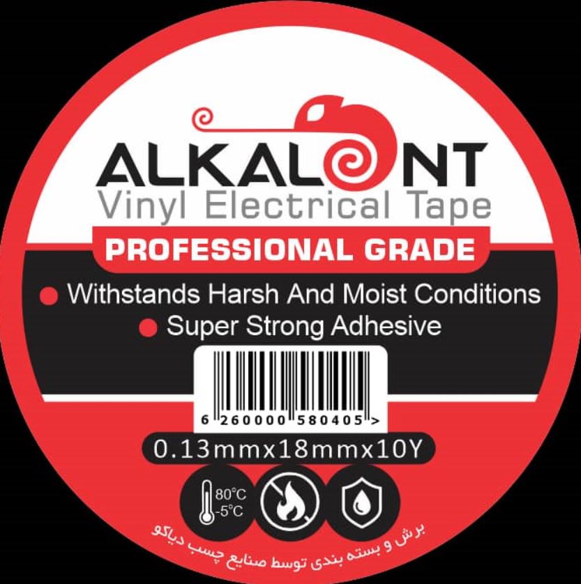 نوار چسب برق نسوز آلکالنت با بهترین کیفیت و مقاومت بالا در ابعاد 0.15 میلی متر * 48 میلی متر * 20 یارد مناسب برای سیم کشی های ساختمان و سایر سیم پیچی ها.